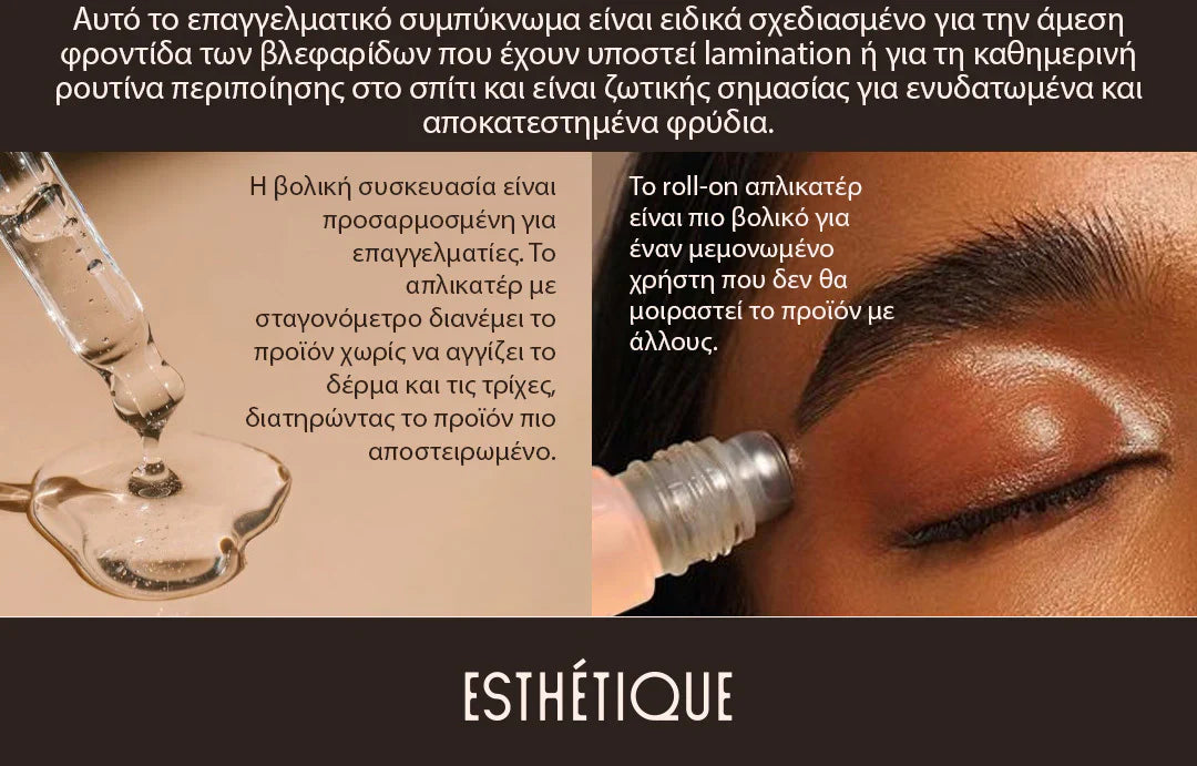 Μετά την ολοκλήρωση των βασικών σταδίων της θεραπείας lamination – όπως το φορμάρισμα και η βαφή – το τελευταίο και εξίσου σημαντικό βήμα είναι η εφαρμογή μιας μικρής ποσότητας λαδιού στα φρύδια. Η πιο υγιεινή μέθοδος είναι η χρήση του προϊόντος σε συσκευασία με σταγονόμετρο (10 ml). Αρκεί να στάξετε λίγες σταγόνες σε ένα καθαρό, μιας χρήσης δοχείο ή σε δίσκο ντεμακιγιάζ, και να εφαρμόσετε το λάδι με μια αποστειρωμένη, μιας χρήσης βουρτσάκι τύπου spoolie, χτενίζοντας απαλά τις τρίχες. Αυτή η μέθοδος αποτρέπει τη μόλυνση του προϊόντος μέσα στο μπουκαλάκι, καθώς το σταγονόμετρο δεν έρχεται σε επαφή με το δέρμα – κάτι που ανταποκρίνεται στα πρότυπα επαγγελματικής υγιεινής. Το βουρτσάκι επιτρέπει ομοιόμορφη κατανομή του λαδιού, καλύπτοντας αποτελεσματικά κάθε τρίχα. Για βέλτιστο αποτέλεσμα, χτενίστε τα φρύδια προς την κατεύθυνση που διαμορφώθηκε κατά τη διάρκεια του lamination – συνήθως ελαφρώς προς τα πάνω και προς τα έξω. Το λάδι δεν χρειάζεται ξέβγαλμα. Το μεγαλύτερο μέρος της σύνθεσης απορροφάται μέσα σε λίγα λεπτά, ενώ η υπόλοιπη ποσότητα δημιουργεί ένα λεπτό προστατευτικό φιλμ που ενισχύει την τρίχα. Τα φρύδια αποκτούν άμεσα πιο υγιή εμφάνιση – είναι πιο μαλακά, λαμπερά και λεία, χωρίς να δείχνουν λιπαρά, καθώς το προϊόν απορροφάται πολύ καλά. Όταν η πελάτισσα κοιτάξει στον καθρέφτη, θα διαπιστώσει μια ξεκάθαρη διαφορά: τα φρύδια δείχνουν περιποιημένα, ενυδατωμένα και καλοσχηματισμένα. Αυτό το τελικό βήμα αναβαθμίζει συνολικά την εμπειρία του lamination, προσφέροντας ένα πιο ολοκληρωμένο και ευχάριστο αποτέλεσμα. Τα καλά ενυδατωμένα φρύδια είναι πιο ελαστικά, γεγονός που βοηθά στη διατήρηση του αποτελέσματος της διαμόρφωσης για μεγαλύτερο χρονικό διάστημα. Χάρη στις ενισχυμένες περιποιητικές του ιδιότητες, το Μαγικό Λάδι Φρυδιών Didier Lab Esthétique είναι το ιδανικό φινίρισμα του lamination – προσφέροντας φρύδια πιο λεία, ελαστικά και εύκολα στον σχηματισμό.