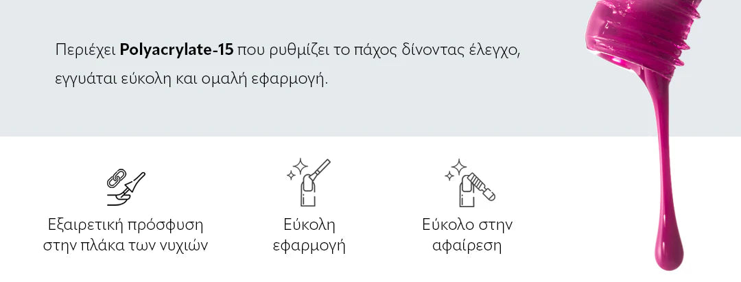 Ημιμόνιμο βερνίκι νυχιών. Δεν περιέχει TPO, είναι tpo-free.