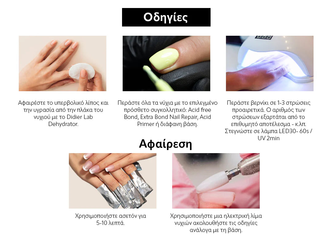 Παραμείνετε 60s κάτω από λάμπα LED ή 120s κάτω από λάμπα UV.