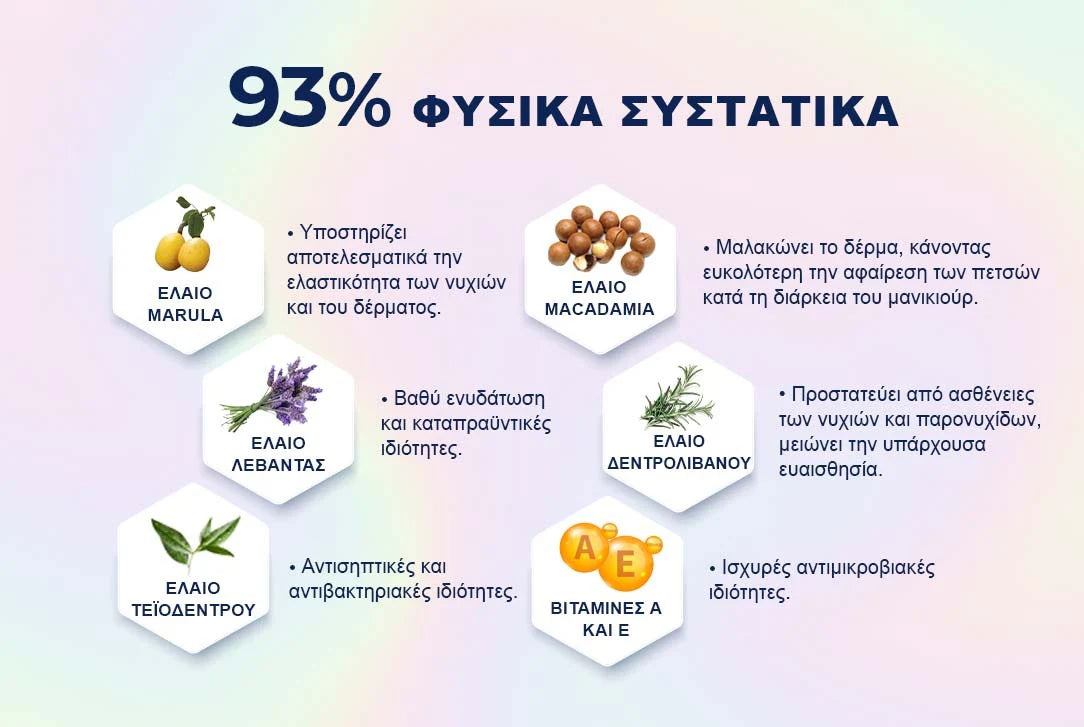 Ιδανικό για την αναγέννηση της πλάκας των νυχιών μετά από μακροχρόνια χρήση τζελ μανικιούρ και ακρυλικών, το μοναδικό μας λάδι αποκαθιστά τις φθορές που έχουν υποστεί τα νύχια από χημικές επεξεργασίες. Από την πρώτη κιόλας χρήση, θα δείτε τα νύχια σας να δυναμώνουν και να αποκτούν πιο υγιή εμφάνιση. Δώστε στα νύχια και στην επιδερμίδα σας την ευκαιρία να αναγεννηθούν από την αρχή!