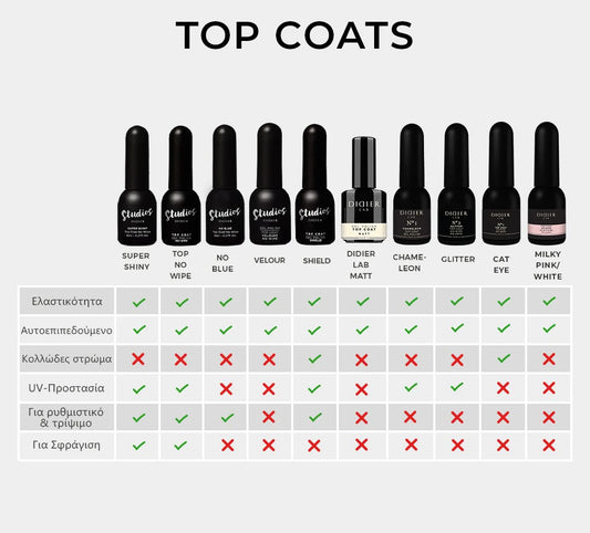 Top Coat no Wipe Super Shiny, Didier Lab, χωρίς HEMA & TPO , Ασφαλής Φόρμουλα, 10ml