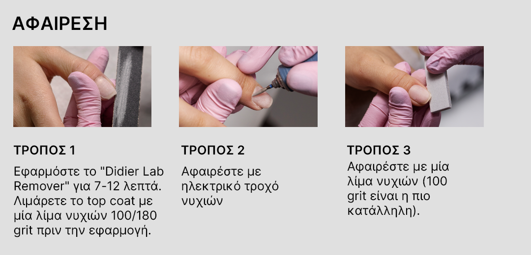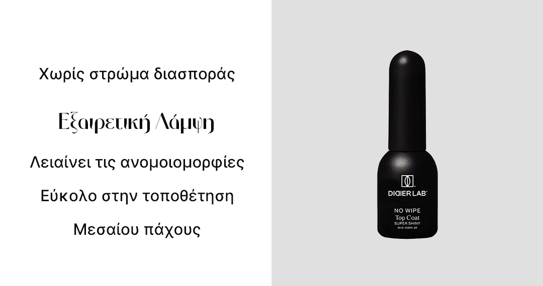 - Αφαιρέστε την περίσσεια λιπαρότητα ή υγρασία από την επιφάνεια του νυχιού χρησιμοποιώντας Didier Lab Dehydrator.