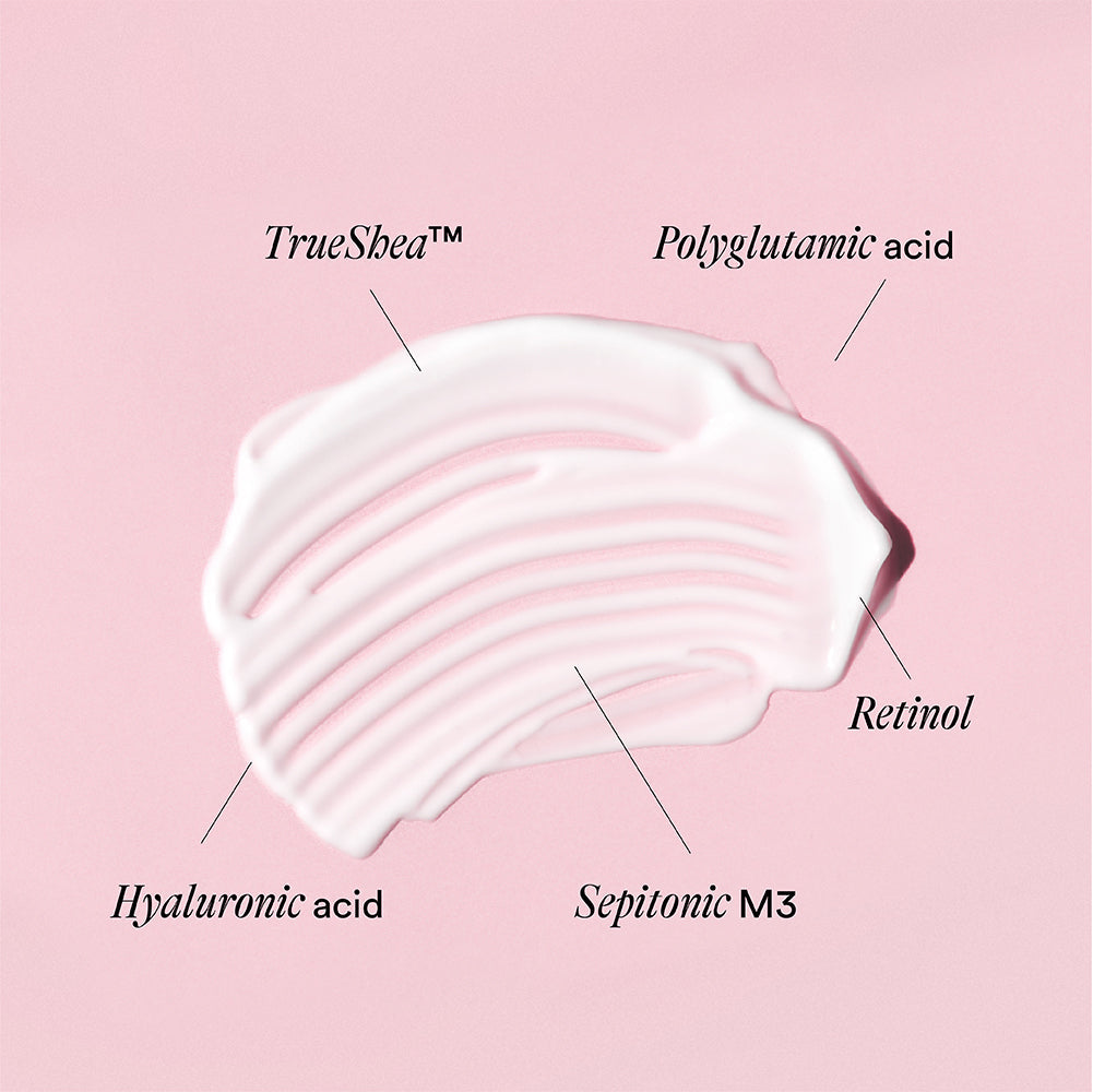 Η ρετινόλη βοηθά στην αναζωογόνηση του δέρματος διεγείροντας τη φυσική παραγωγή κολλαγόνου. Επιταχύνει επίσης τον κύκλο εργασιών των κυττάρων του δέρματος για να αποκαλύψει νέο, πιο φωτεινό δέρμα.