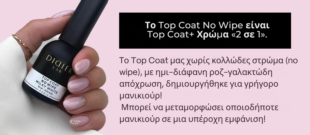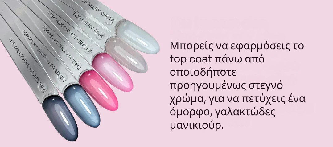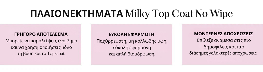 Το Milky Pink no wipe top coat είναι ένα top που δημιουργήθηκε για την τάση Milky Nails.